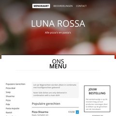 Luna-rossa staat gerangschikt op 845.521 in Nederland. 'Luna Rossa - Alle pizza's en pasta's - Italiaanse Pizza, Italiaans, Egyptisch, , Snacks, Vis bestellen.'