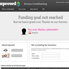 Sprowd staat gerangschikt op 1.480.652 in Nederland. 'Crowdfunding for startups | Sprowd - serious crowdfunding.'