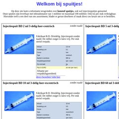 Spuitjes staat gerangschikt op 3.707.480 in Nederland. 'Injectiespuiten, lege kunstof (PP) spuiten in verschillende afmetingen met en zonder naald.'